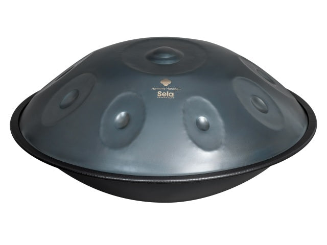 Le handpan est un instrument absolument adapté aux débutants, où percussion et mélodie se rencontrent. Jouer du handpan crée des paysages sonores apaisants, sphériques et durables qui captivent complètement le joueur et l'auditeur. Aucune expérience préalable ni connaissance de la théorie musicale ne sont nécessaires, car tous les champs sonores du handpan sont sur une échelle fixe. Avec la plupart des modèles, il n'est pas possible de frapper des notes dissonantes, c'est-à-dire des notes qui sonnent « faux ». Par conséquent, vous pouvez suivre votre propre intuition en jouant et vous perdre dans des mélodies mystérieuses et rêveuses après seulement peu de temps. Avec un peu de pratique, des rythmes plus compliqués, des accords captivants et des mélodies à deux voix sont possibles. Les handpans Sela Harmony sont entièrement fabriqués à la main, parfaitement accordés et fabriqués en acier nitruré. La nitruration durcit la surface du handpan, lui donnant un son percussif qui résonne beaucoup plus rapidement que les handpans en acier inoxydable. En raison de leur sustain court, les handpans nitrurés conviennent principalement au jeu rapide, car les notes sont plus clairement séparées les unes des autres et se chevauchent moins. Ils sont donc recommandés aux batteurs, aux joueurs de cajon ou de djembé, par exemple, qui aiment jouer des rythmes et des mélodies plus rapides. Les handpans en acier nitruré nécessitent plus d'entretien que les modèles en acier inoxydable et doivent donc être nettoyés régulièrement et protégés de l'humidité. Les handpans Sela Harmony ont une finition mate gris-bleu, ce qui leur donne un aspect mystérieux et fascinant. L'accordage D Kurd (fréquence fondamentale 440 Hz) est l'une de nos gammes les plus vendues. La note centrale au milieu du handpan est D3, autour d'elle sont disposées en cercle les notes A3, Bb3, C4, D4, E4, F4, G4 et A4. Particulièrement pratique : un aperçu de la gamme avec les différents champs de tonalité est gravé au laser sur la face inférieure du handpan. Avec sa gamme de ré mineur au son brillant, le D Kurd peut être utilisé pour jouer une grande variété de mélodies, de la méditation tranquille à la mélancolie en passant par la puissance et la gaieté.