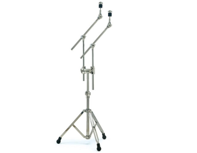 Support de cymbale double, double renfort, 2 bras de perche de cymbale avec inclinaison à engrenage fin, 3e pied rotatif indépendant